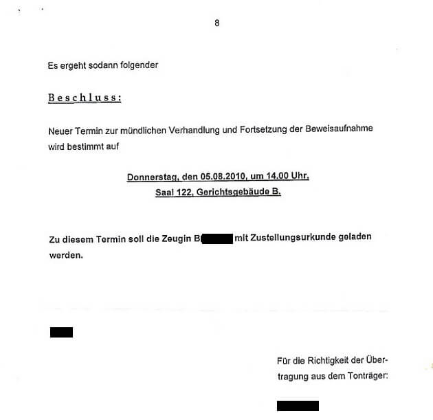 Zeugenvorladung keine Erwähnung im Protokoll wert. So "frisiert" eine deutsche Richterin ihr Protokoll. Dies ist eines von mehreren Beispielen richterlicher Missachtung von Fairness und prozessualen Regeln bei Wahrheits- und Rechtsfindung und bringt