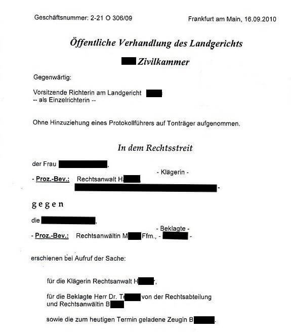 - Die Aussage des eigenen "Zeugen" L der Bank vom 15.07.2010, die vom Gericht falsch protokolliert wurde.