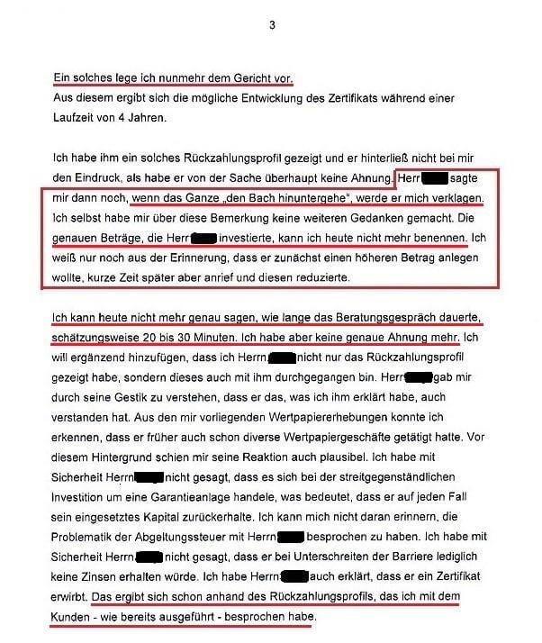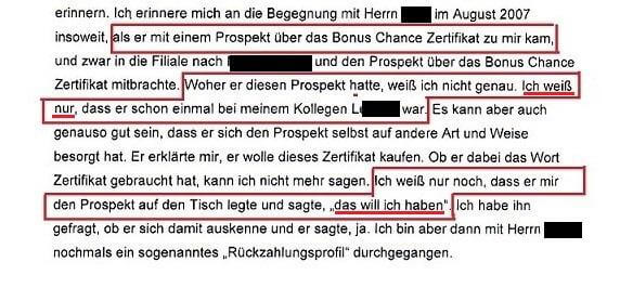 Das alles ist dieser "Spezialkammer für Bankrecht" jedoch nicht aufgefallen! Das Gericht "begründet" in seinem Urteil mit dieser unsinnigen Falschaussage sogar das phänomenale "Erinnerungsvermögen"