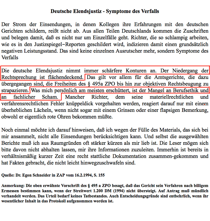 OLG-Richter a.D. Dr. Egon Schneider: Deutsche Elendsjustiz - Symptome des Verfalls