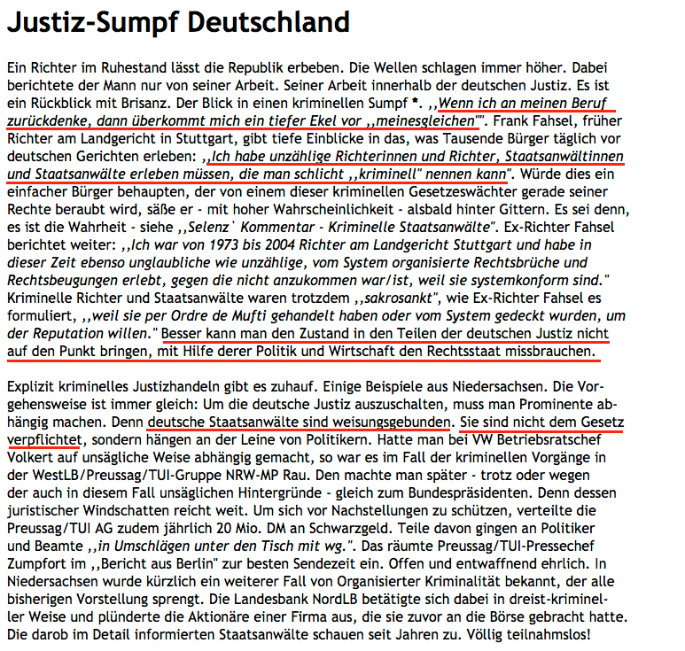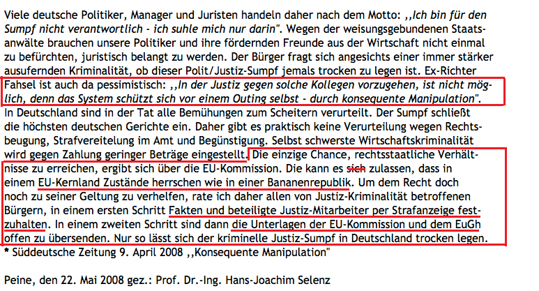Kommentar von Prof. Selenz zu einem Leserbrief des Richters a.D. Frank Fahsel über den Zustand der deutschen Justiz