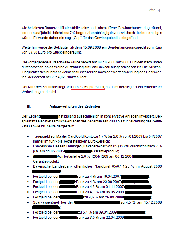 - Keine Produktprospektübergabe, keine Risikoaufklärung