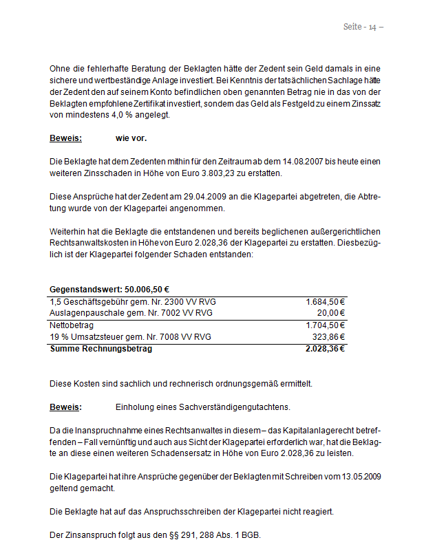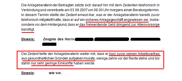 - Meine gesundheitsbedingte Kündigung meines Arbeitsvertrags unmittelbar vor der streitgegenständlichen Beratung