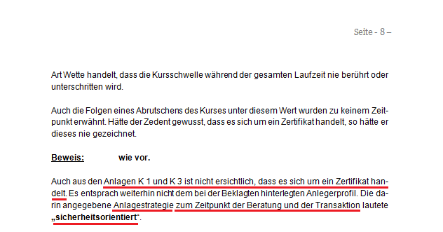 - Anlagestrategie laut Anlegerprofil zum Zeitpunkt der Beratung