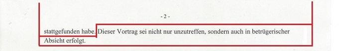 Dieser Vortrag sei nicht nur unzutreffend, sondern auch in betrügerischer Absicht erfolgt