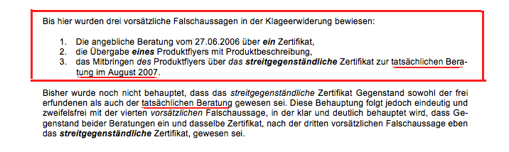 Fakten in der Klageerwiderung zweifelsfrei, wie gleich gezeigt wird. Hier wird in dem Irrglauben gelogen, die Lügen ließen sich nicht ohne großen Aufwand nachweisen. Dieses Beispiel beweist das Gegenteil.