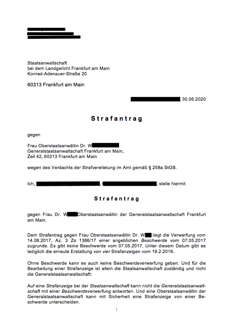 Strafantrag vom 30.06.2020 wegen erneuter Strafvereitelung im Amt vom 14.08.2017