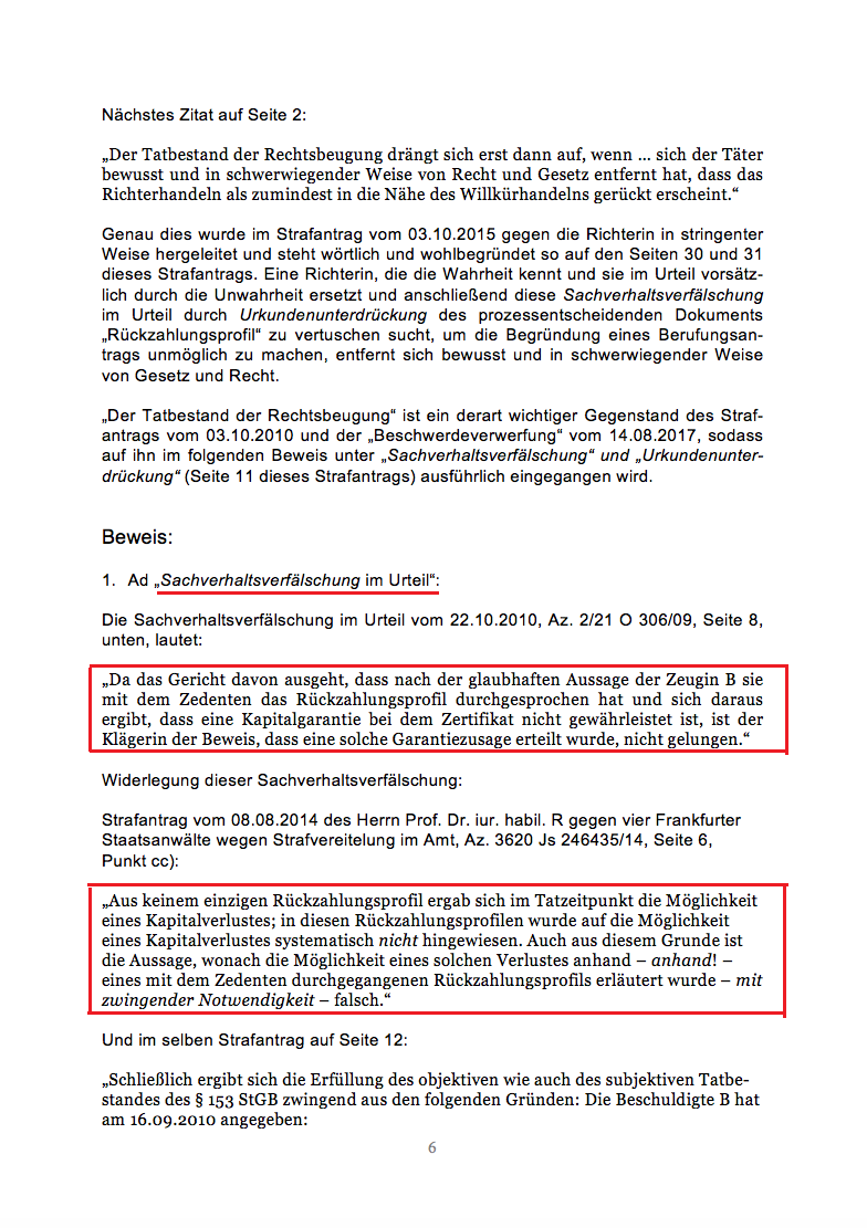 - Zum zweiten Tatbestand der Rechtsbeugung durch Urkundenunterdrückung des prozessentscheidenden Dokuments "Rückzahlungsprofil" im Urteil