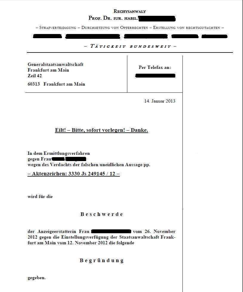 Lesen Sie nun bitte die Beschwerdeabweisung vom 19.02.2013 durch die Generalstaatsanwaltschaft.