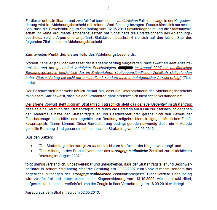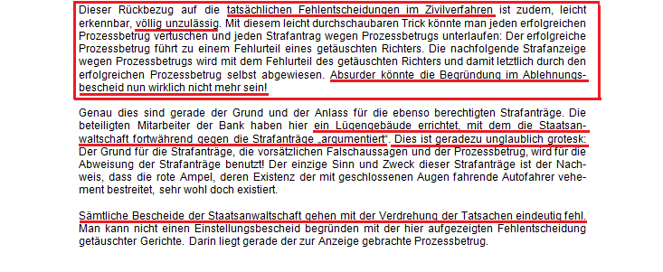 - Typisches Beispiel für die Tatsachenverdrehungen dieser Staatsanwältin in ihrem Ablehnungsbescheid
