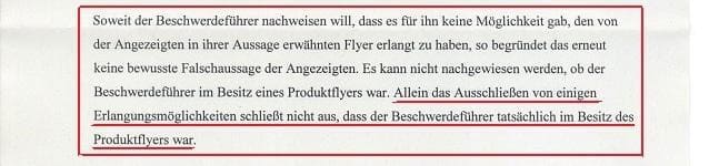 kommentiert. Der Satz: Allein das Ausschließen von einigen Erlangungsmöglichkeiten schließt nicht aus, dass der Beschwerdeführer tatsächlich im Besitz des Produktflyers war