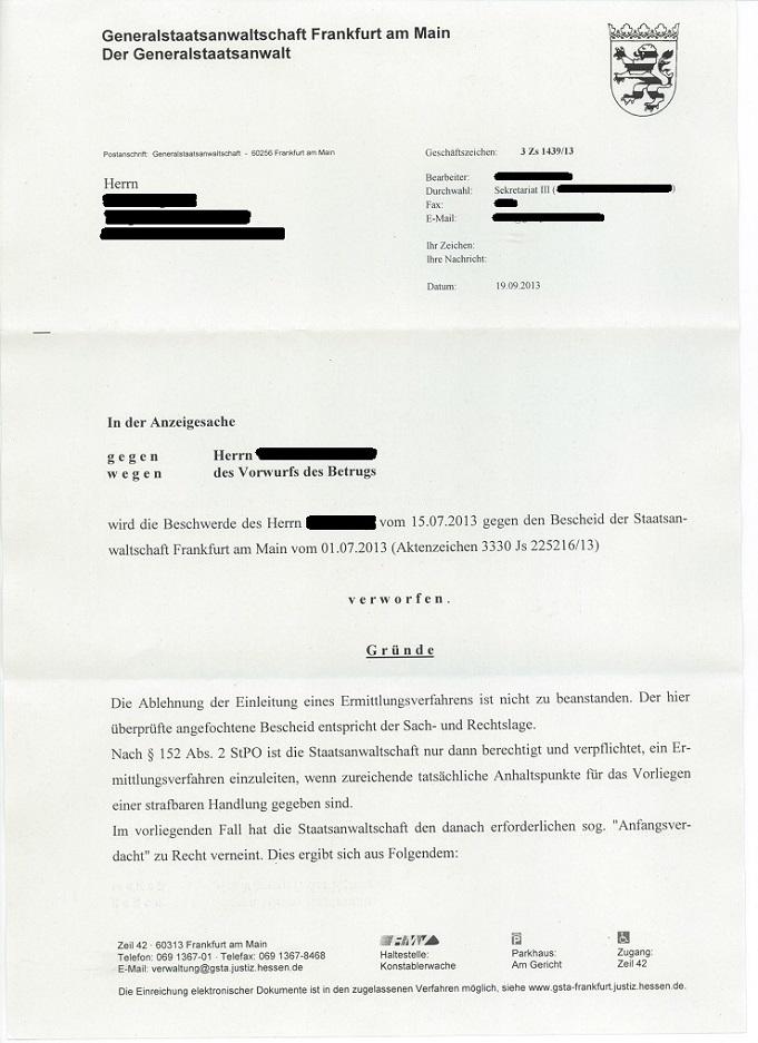 Die angemessene Antwort auf diesen Bescheid finden Sie im Strafantrag vom 08.08.2014 wegen Strafvereitelung im Amt auf Seite 21.