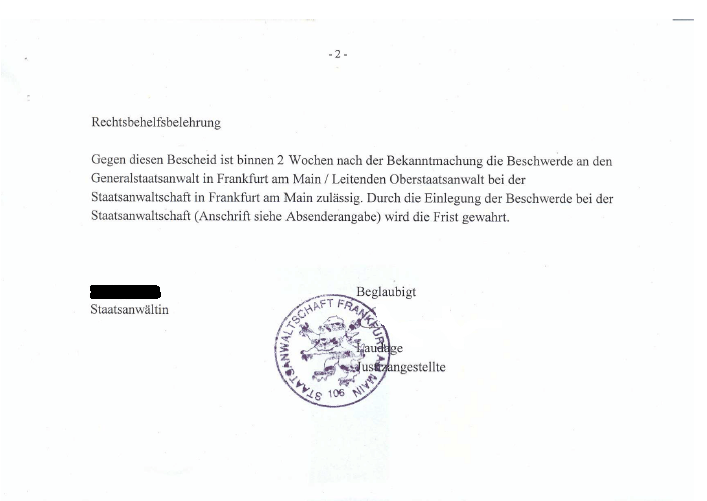 Lesen Sie nun bitte die Beschwerde vom 14.01.2013 gegen die zweite Ermittlungseinstellung.