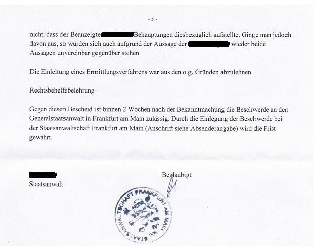 Dieser abstruse Textausschnitt ist symptomatisch für die Ermittlungsleistungen der Frankfurter Staatsanwaltschaft im vorliegenden Fall.